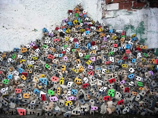 | "Amontoados" - (Fotografia de Instalação com pedras portuguesas pintadas) - Alex Brasil Artista brasileiro contemporâneo |